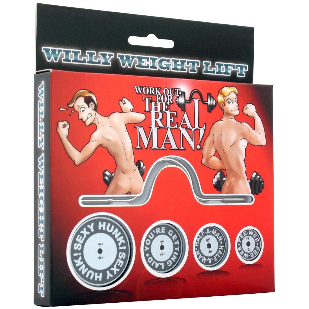 Haltera amuzanta pentru Penis. Vrei sa stii cat de puternic e partenerul tau, haltera pentru penis este solutia perfecta. Vine alaturi de 4 seturi diferite de greutati, de la usor la greu – cu inscriptiile Pee-Wee, Half-a-man, You’re getting Laid si Sexy Hunk.Pentru cele mai bune rezultate, striptease-ul si mangaierile usoare sunt recomandate inainte de antrenament!
