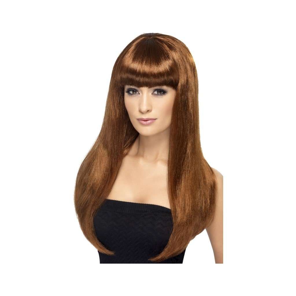 Peruca cu parul lung, coafura cu parul drept si breton.