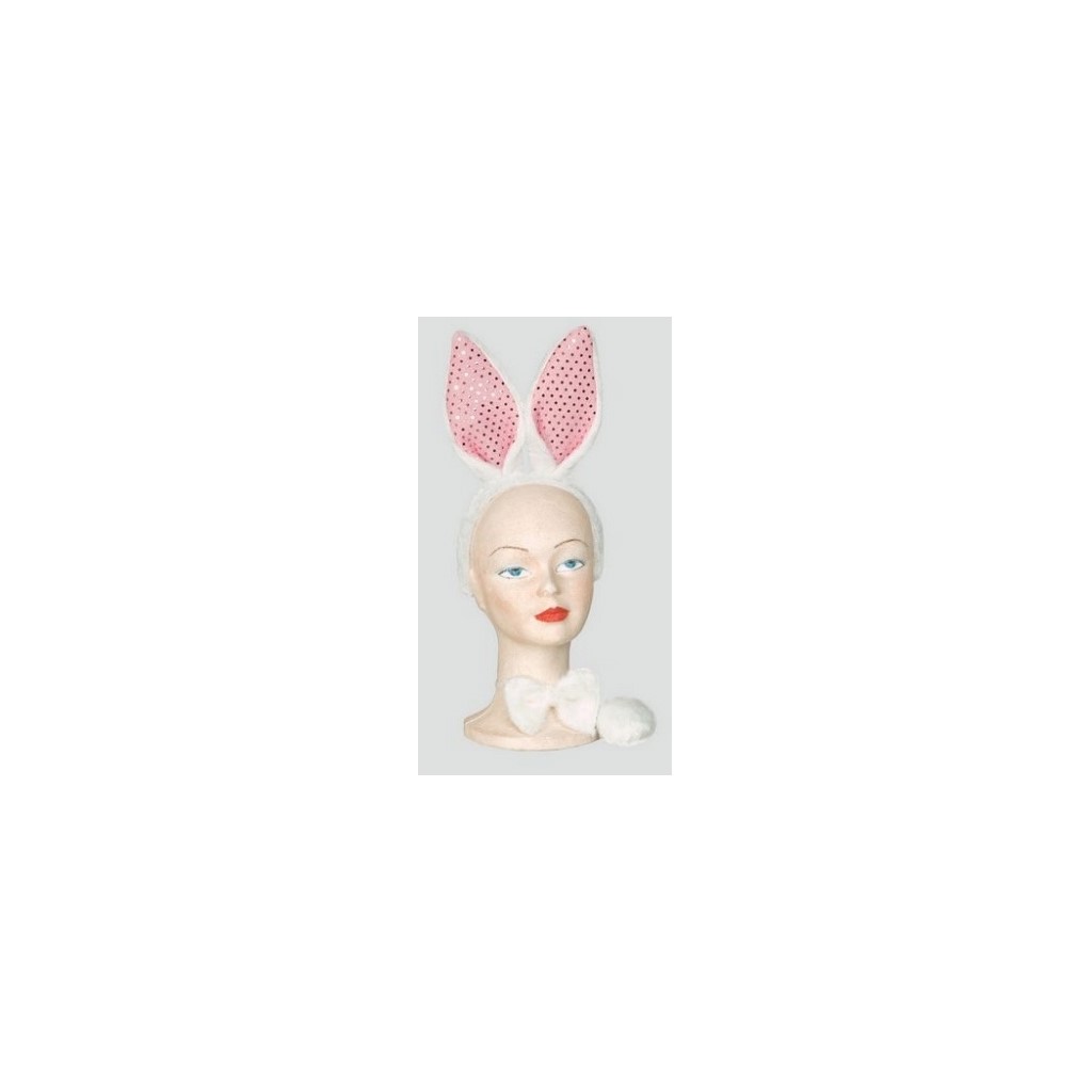 Set de iepuras format din 3 piese: cordeluta alba cu urechi roz, papion si codita.