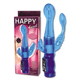 Vibrator albastru cu stimulare clitoridiana si anala si rotatie ajustabila.