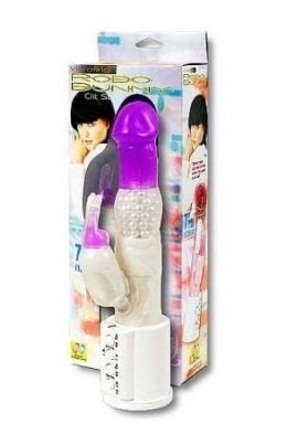 Vibrator extraordinar din jelly moale, cu design special, cu gland bine conturat, perle rotative pentru marirea placerii in timpul penetrarii si stimulator clitoridian in forma de iepuras.